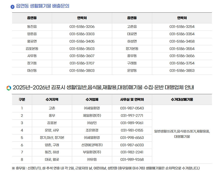 김포시 생활쓰레기 배출 요령